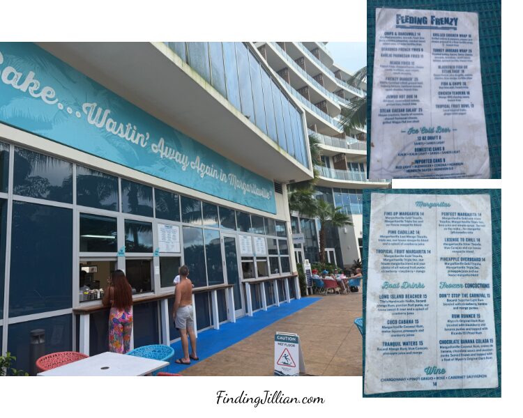 ✔️ Reasonably Priced Food + Drinks – The menu at Feeding Frenzy pool bar was better than expected for a resort. Think burgers, chicken tenders, tacos, frozen drinks, and tropical cocktails—all decently priced. I had my typical island favorite, French fries, and my friend and I each enjoyed one (or two) rum-and-diet-Coke. The bartender was definitely not shy when pouring the rum.